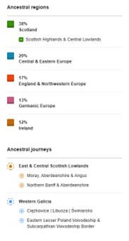 My ethnicity estimate varies slightly between two of the big commercial genealogy websites, however, the regions are mostly the same.